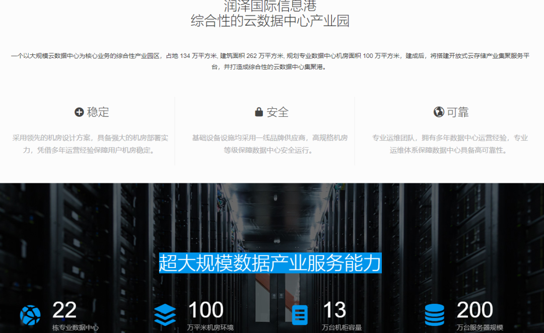 2010年5月,总投资98亿元的润泽国际信息港破土动工,规划建筑面积262万平方米,机房面积66万平方米,是当时全球最大的芝加哥数据中心的两倍多。