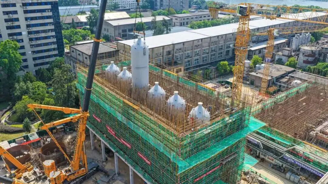 长沙公司总承包的某竹浆纸技改项目6台蒸煮锅吊装成功