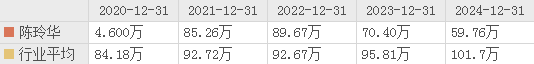 薪酬方面,陈玲华2024年的薪酬为59.76万元,在已披露的高管中位居第一。不过,其薪酬已连续三年呈下降趋势:2022年为89.67万元,2023年降至70.40万元。