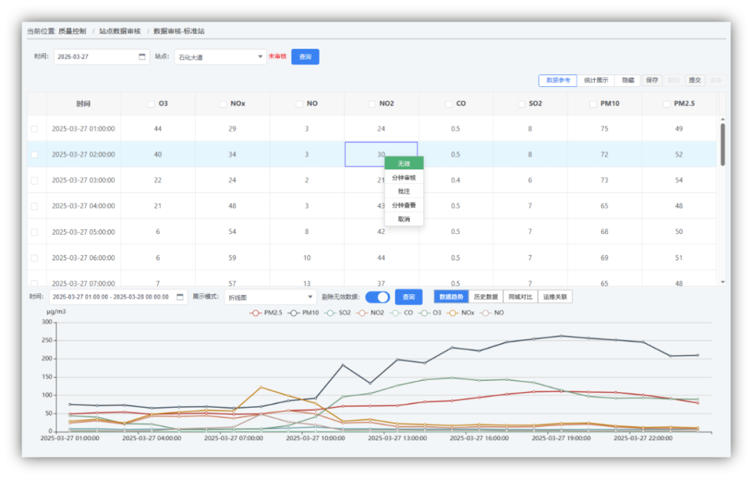 AI智能审核:通过AI算法对监测数据进行自动审核和有效性判断,自动完成数据的一级审核;开发沙尘天气自动判别算法,实现沙尘天气数据自动审核