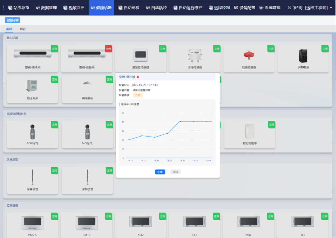 故障自检与预测:实时采集仪器参数、状态信息,通过AI算法开展设备状态数据、监测数据等关联分析,及时发现并处理设备故障,根据参数动态变化进行故障预测