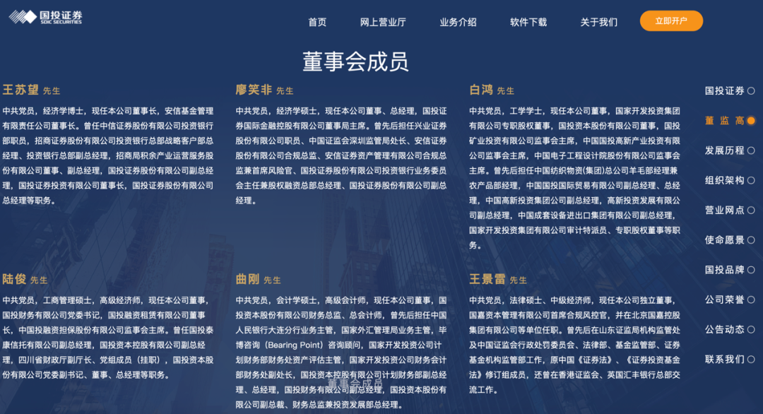 如今,国投证券原副总经理廖笑非升任公司总经理,王苏望担任董事长,两人搭班将带领国投证券迎来新的发展。