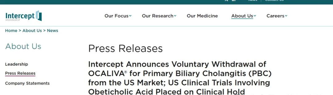 2023年10月,欧洲药品管理局(EMA)评估认为奥贝胆酸的现有数据无法证实其临床获益,并建议撤销上市许可。2024年9月,欧洲委员会(EC)正式撤销了奥贝胆酸在欧洲的上市许可。今年9月11日,Intercept Pharmaceuticals宣布,应美国FDA要求,自愿撤回奥贝胆酸在美国市场的销售。同时,FDA暂停了所有涉及奥贝胆酸的临床试验。这一系列举措,让奥贝胆酸在全球市场遭遇了“滑铁卢”。