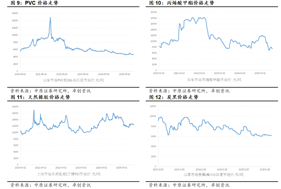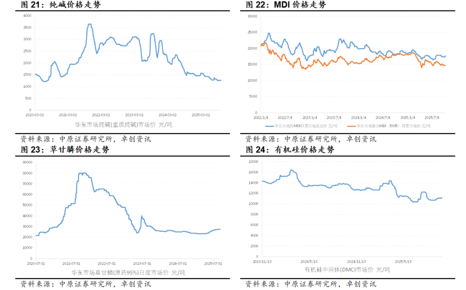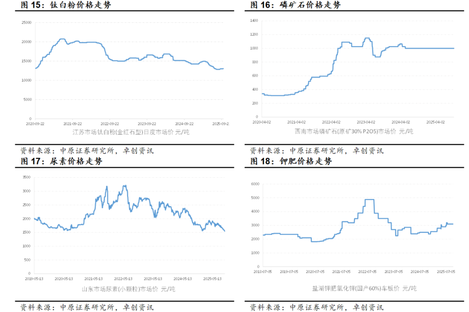 市场回顾:根据Wind数据,2025年9月中信基础化工行业指数上涨5.02%,跑赢上证综指4.38个百分点,跑赢沪深 300 指数1.82个百分点,行业整体表现在30个中信一级行业中排名第7位。最近一年来,中信基础化工指数上涨28.23%,跑赢上证综指11.86个百分点,跑赢沪深 300 指12.73个百分点,表现在30个中信一级行业中排名第10位。
