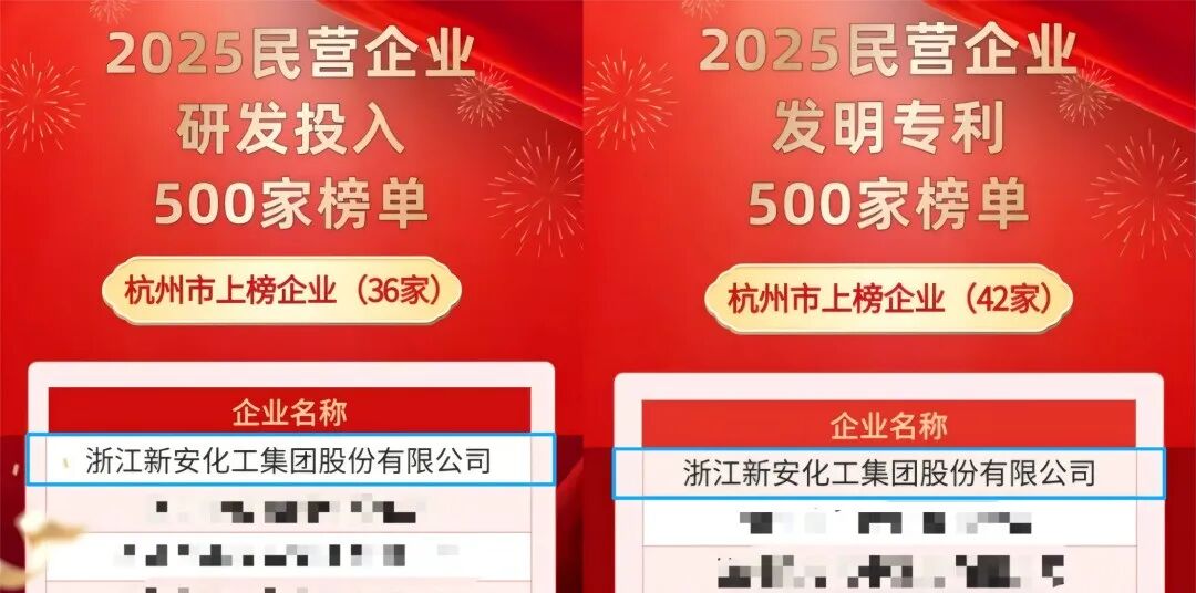 近日,新安股份成功入选全国工商联发布的“2025民营企业研发投入500家”与“2025民营企业发明专利500家”两份权威榜单,并同时荣登浙江省企业联合会、省企业家协会、省工业经济联合会发布的“2025浙江省制造业百强企业”榜单。