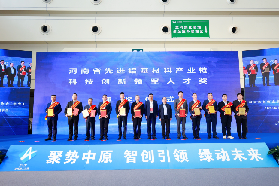 中孚高精铝材副总经理曹永国、神火新材料总经理陈凯、中色科技主任工程师何向问、万基控董事长黄小宁、兴发(河南)总经理李美玉、中铝(郑州)铝业生产装备联合党委书记李义飞、中铝中州铝业主任工程师李志刚、中杞新材料总经理刘春光、中铝郑州研究院分院副院长王建立、中铝洛阳铝加工技术质量部部长吴广奇、河科大材料学院副院长肖笑、龙鼎铝业总经理张安乐、中铝洛阳铝箔总经理张灵新、明泰铝业装备部长郑国强(按姓氏排名)获“河南省先进铝基材料产业链科技创新领军人才”荣誉称号。
