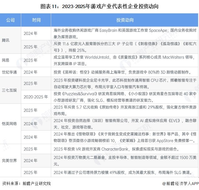 2023年以来,游戏产业代表性企业的投资动向主要包括收购公司拓展业务、通过对子公司增资的方式投资境内外游戏工作室。游戏产业代表性企业最新投资动向如下: