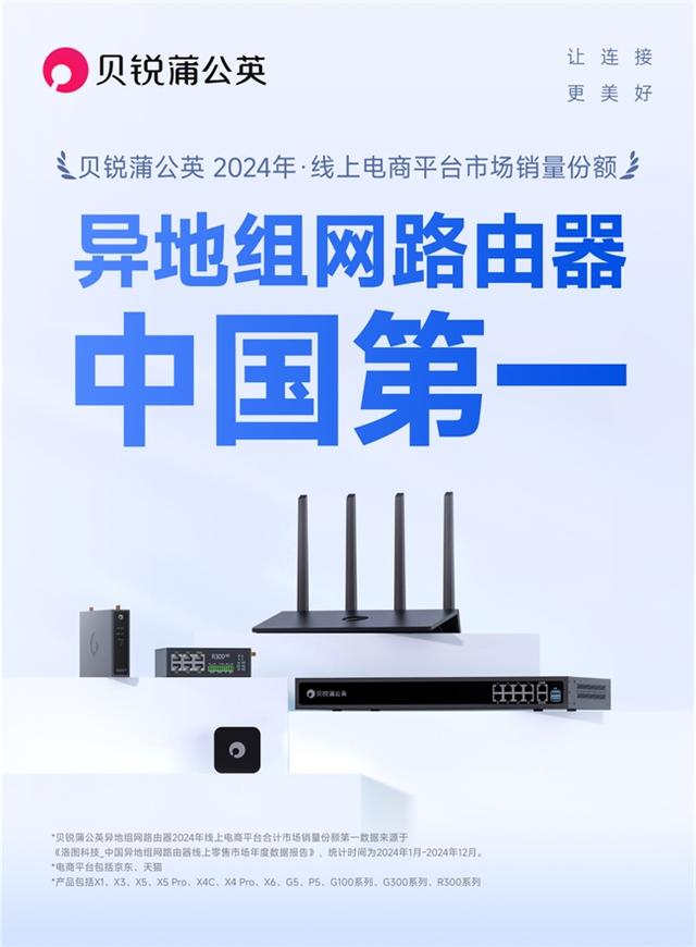 2024年,蒲公英异地组网路由器荣登电商平台中国市场销量第一,其中R300系列更位列工业类路由器榜首,技术力与市场认可双双领先。