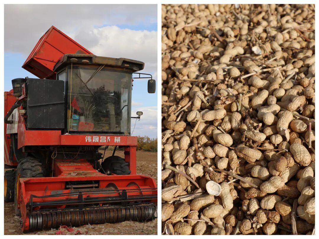 伴随着轰鸣的农机声,一台台花生联合收获机在田间来回穿梭,将饱满的花生果从土壤中分离、采收,标志着亚盛金塔分公司有机花生进入集中收获期。