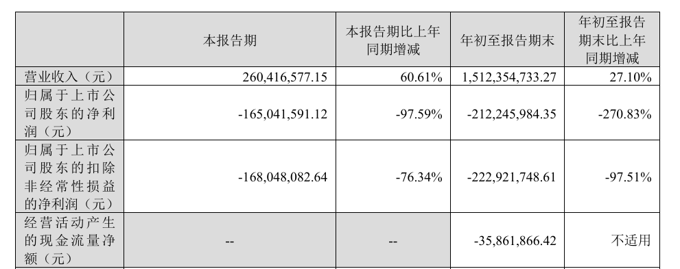 第三季度单季,博世科营收同比增长60.61%至2.6亿元,归属于上市公司股东的净利润同比锐减97.59%至-1.65亿元。