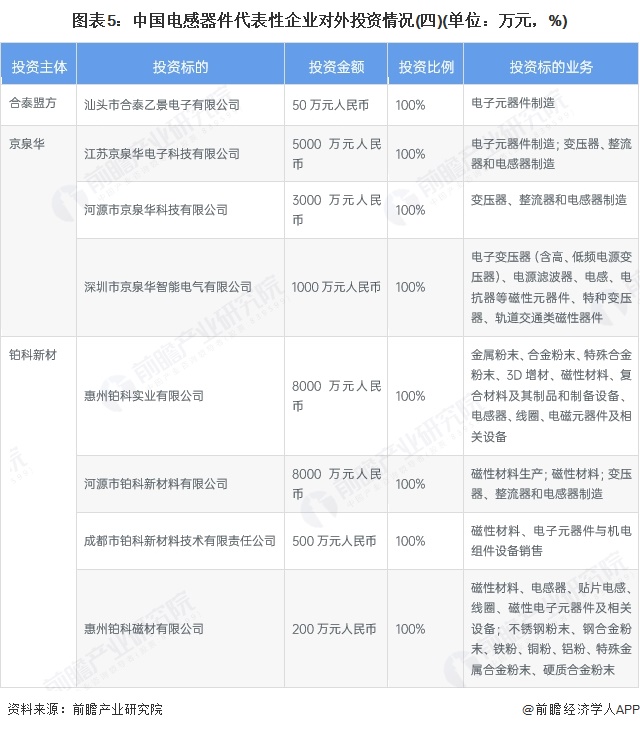 从中国电感器件吗代表性企业的对外投资来看,顺络电子、风华高科、麦捷科技、铂科新材、合泰盟方、京泉华等企业均通过布局产业链上下游实现产业链一体化,从而实现产业链的降本增效。