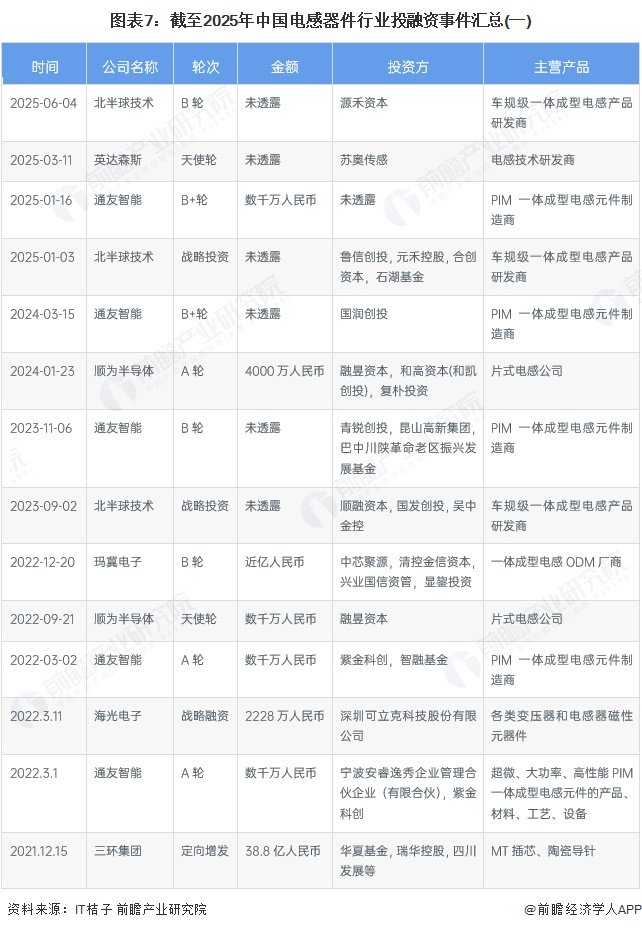 3、电感器件行业一在级资本市场的投资热度相对较低