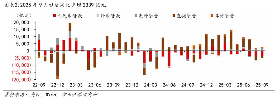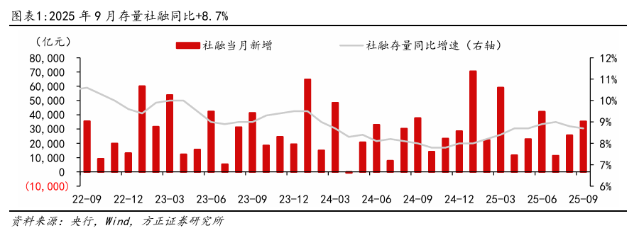 事件:10/15,央行发布9月金融数据,9月社融新增3.53万亿元,同比少增2339亿元,存量同比增速8.7%,环比-0.1pct。