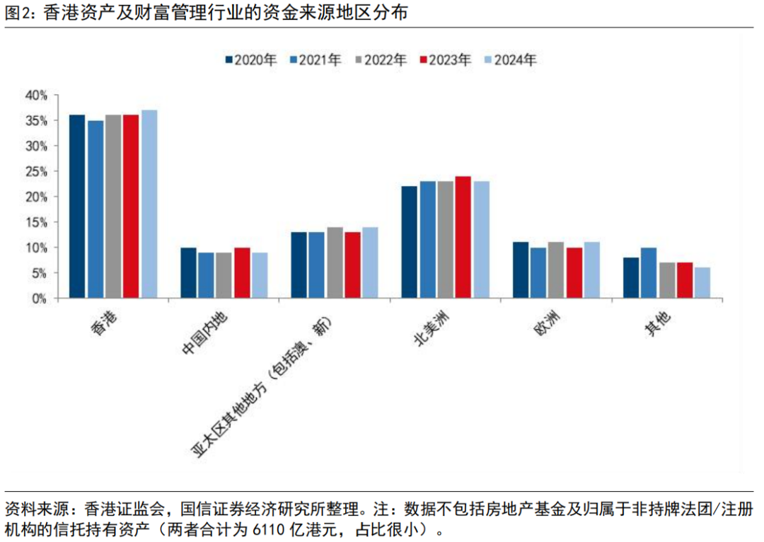 对于我国资产管理机构而言,发展跨境业务更是驱动自身转型升级、提升国际竞争力的关键契机。激烈的国内竞争迫使机构必须打造差异化能力,跨境资管业务链条长、专业要求高,能直接倒逼机构在宏观研究、汇率风险管理、全球交易执行等核心能力上实现跃升。通过参与全球竞争,机构可以逐步从“本土化”运营转向“全球化”配置,从而在低利率的严峻挑战中,开辟出一条以专业能力构筑护城河的长期增长新路径。我们先以我国香港地区为例,探讨跨境资管业务和财富业务的发展模式。