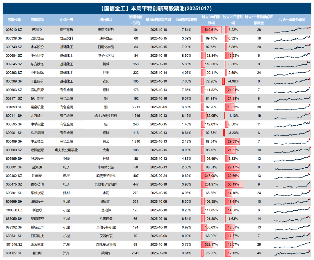 注:本文选自国信证券于2025年10月17日发布的研究报告《由创新高个股看市场投资热点(第215期)》