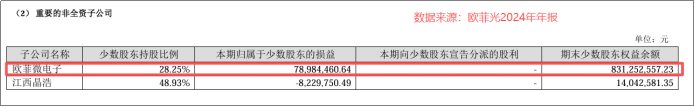 此外,欧菲光在年报中提到,2024年公司净利润下降的原因之一,在于报告期内少数股东损益同比上升。欧菲光开始在这块“损失”发力。