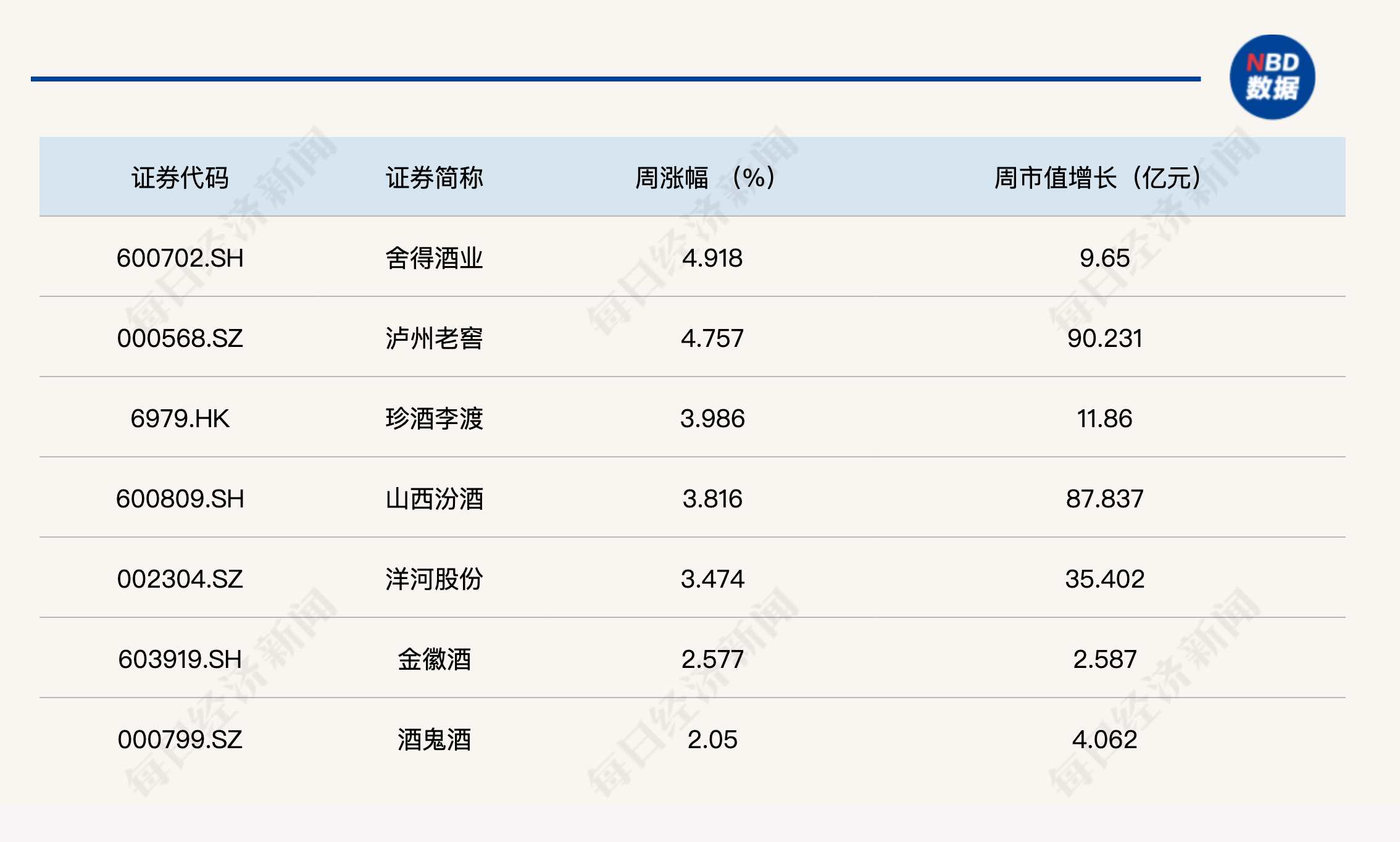 市场阶段性风险偏好本周发生变化,内需消费配置价值突出。本周Wind白酒指数周涨0.74%,以60080.24点报收,指数重回60000点大关。个股方面,舍得酒业、泸州老窖周涨幅均接近5%,涨幅领先;珍酒李渡、山西汾酒以及洋河股份的周涨幅也均超过3%。