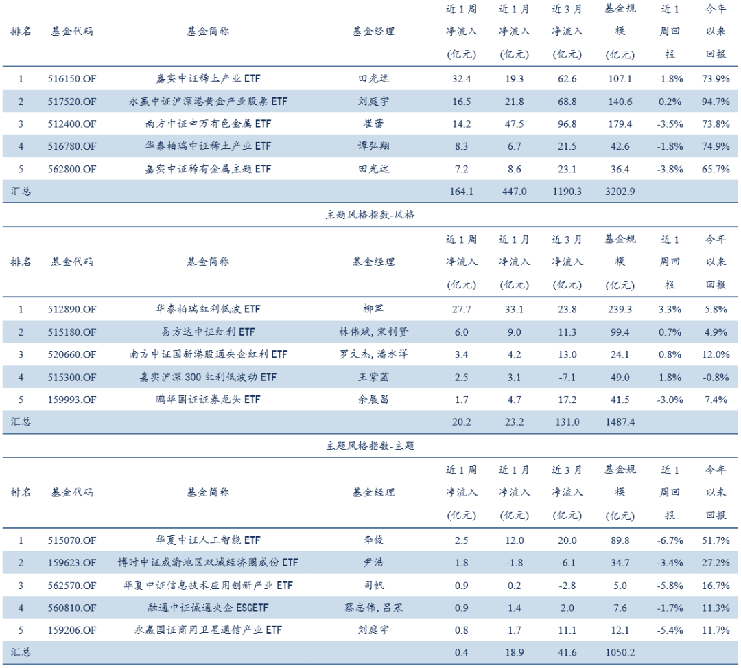 附录1:本周各类型ETF净流入TOP5产品信息一览