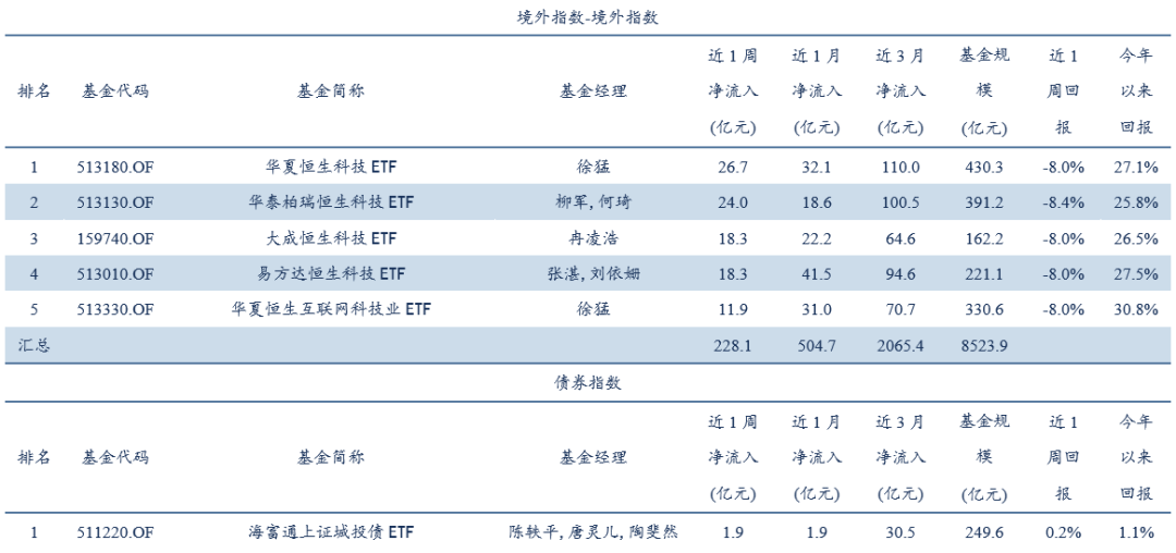 跨境ETF方面,本周资金净流入约228.1亿元,合计规模为8523.93亿元。
