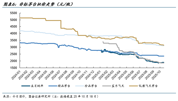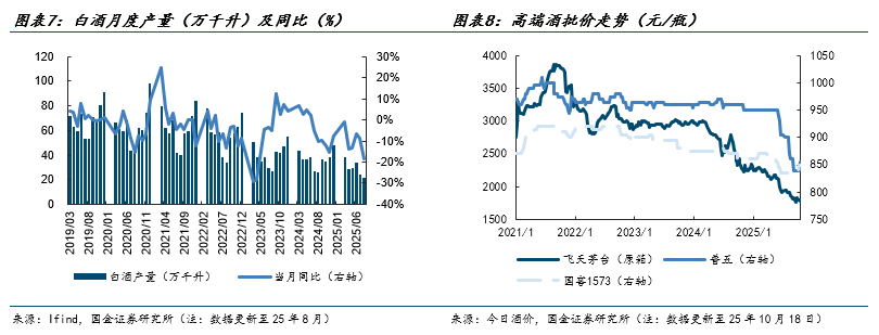 临近三季报披露,目前市场已基本定价Q3行业加速出清的趋势,这也意味着社会库存将步入“被动去库”阶段,因此节后主流白酒单品价盘表现相对趋稳,流通市场参与方的价格预期正逐步夯实。考虑双十一窗口期临近,预计线上低价补贴仍会对线下流通价盘产生扰动,但我们预计主流白酒单品批价再下行空间有限。我们维持白酒行业景气度“下行趋缓”,白酒行业动销最为承压的时刻已经过去。伴随“反内卷”持续推进&各地促消费政策持续落地,预计中期维度企业端&居民端消费情绪也将持续改善,届时白酒行业景气度有望企稳回升。