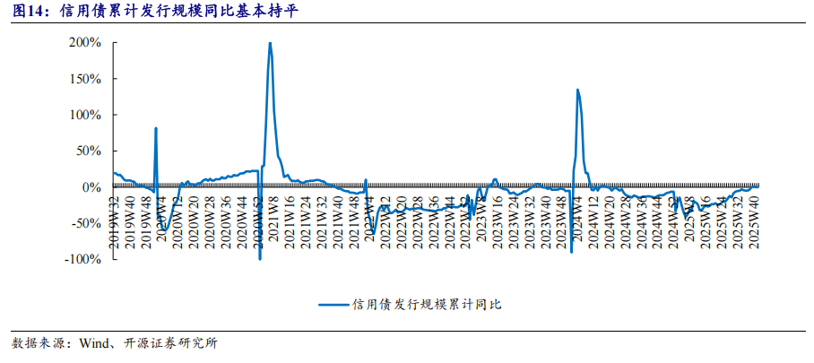 2025年第42周,信用债发行44.5亿元,同比减少4%,环比增加373%,平均加权利率2.59%,环比减少18BP。信用债累计发行规模3193.1亿元,同比基本持平。
