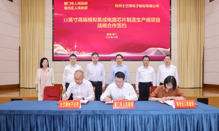 10月18日,厦门市人民政府、厦门市海沧区人民政府、杭州士兰微电子股份有限公司在厦门签署《12英寸高端模拟集成电路芯片制造生产线项目战略合作协议》,在厦门市海沧区投资建设一条对标国际领先水平、以IDM模式运营、拥有完全自主知识产权的12英寸高端模拟集成电路芯片生产线。