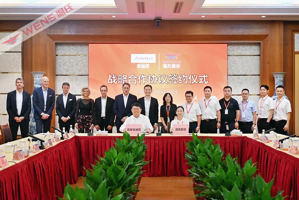 10月16日,温氏股份与中化集团旗下全球领先的动物营养添加剂企业——蓝星安迪苏正式签署战略合作协议。温氏股份副总裁兼采购中心部长孙芬,蓝星安迪苏董事长兼总经理郝志刚、副总经理兼中国区总经理朱小磊等出席了签约仪式,共同见证了这一重要时刻。