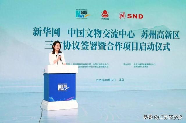 金秋十月的北京,银杏染金、秋阳正好,在这充满收获气息的时节里,苏州高新区与新华网、中国文物交流中心于10月17日,在北京举行三方合作协议签署及项目启动仪式。此次合作,是高新区深化文博创新、布局数字文化产业的重要举措,将为区域文化产业高质量发展按下“加速键”。新华网总裁申江婴,中国文物交流中心主任谭平,苏州高新区党工委委员、宣传部部长杨斌出席活动。