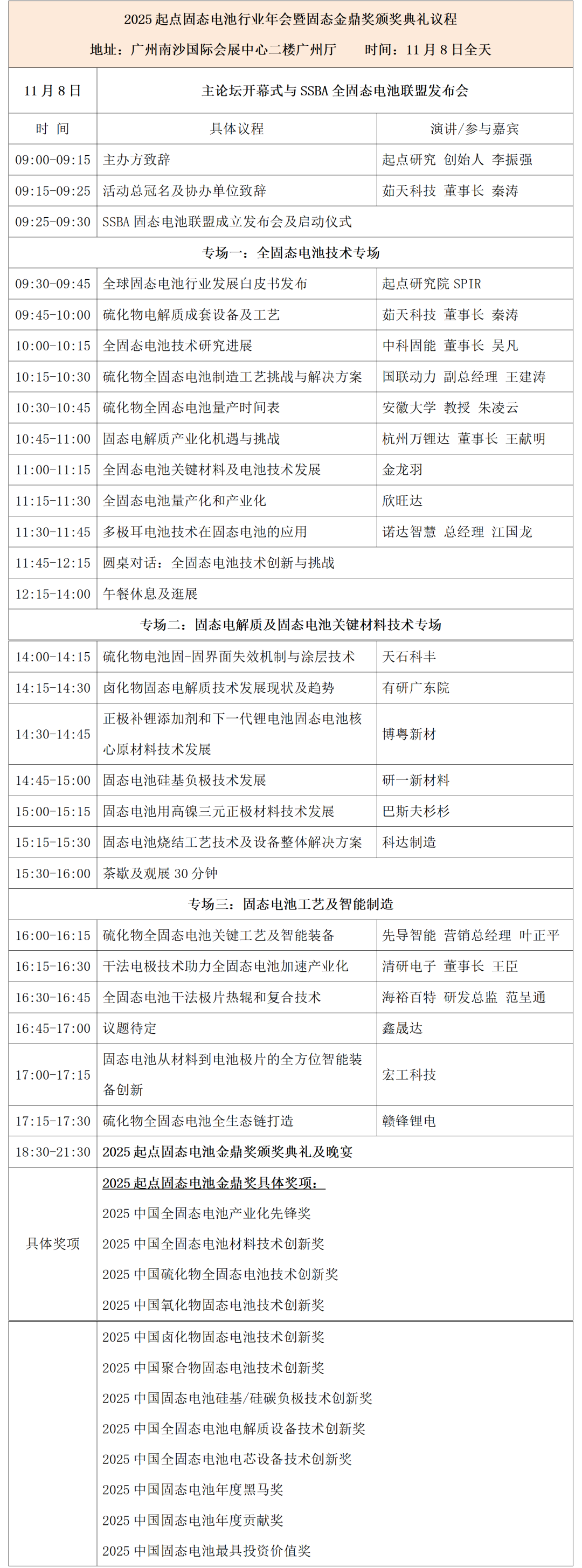 主办单位:起点固态电池、起点锂电、SSBA全固态电池联盟