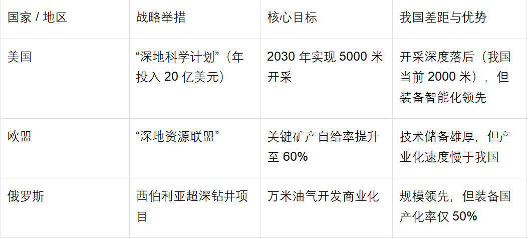 资源安全刚需:我国铜、金、铁等战略性矿产对外依存度超70%,浅部资源枯竭倒逼向3000米以下深部要资源(如深部金属矿、地热能、油气)。