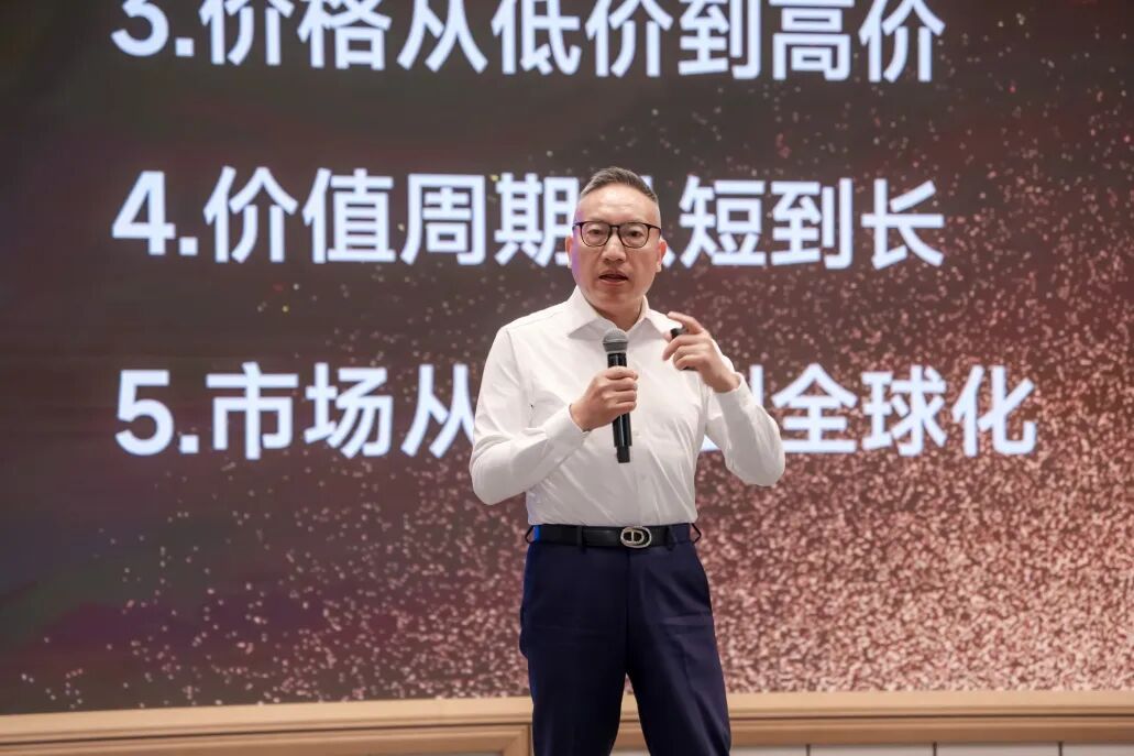 浙江中力机械股份有限公司董事长何金辉分享的题目是《对于行业改变的几点思考》。主要分为三点,他讲到了1.从需求到技术:经济需求拉动市场变化,技术创新驱动产品增长;2.从低开到高走:行业要从大到强、产品要从低到高、价格要从低价到高价、价值周期要从短到长、市场要从出口到全球化;3.从搬运到移动的观点,工业车辆应用场景正在经历从有人到无人、从无人到具身、从载体到物体、从搬运到移动、从场内到场外的演变过程。