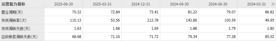 今年中报公司应收账款25亿占总资产3.6%(698亿),应收账款占总资产比例较低,较去年同期26亿同比下降4%,应收账款的下降,使得公司应收账款周转天数68天较去年同期77天下降9天。