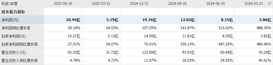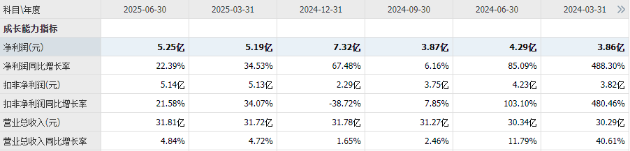 其中第二季度营收31.81亿同比增长4.84%,净利润5.25亿同比增长22.39%;