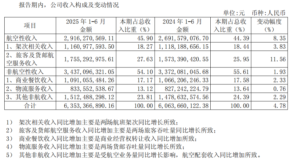2025年8月29日上海机场公布了2025年半年度经营业绩:营收63.53亿同比增长4.78%,净利润10.44亿同比增长28.14%;