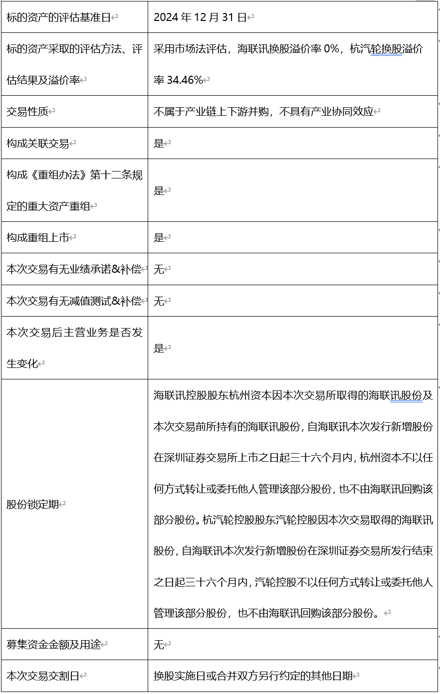 本次交易采用市场法评估,海联讯换股溢价率0%,杭汽轮换股溢价率34.46%。对应被吸并方杭汽轮2024年净利润计算其PE为19.4倍(2024年收入66.39亿元,净利润5.79亿元)。