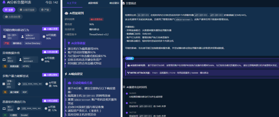 在此基础上,平台深度融合AI技术,重塑安全运营逻辑,将传统依赖人工经验的被动运维模式,升级为数据驱动的主动决策体系。依托集成DeepSeek大模型的RAG(检索增强生成)能力,平台能够对企业现有安全工具与流程进行统一纳管,智能分析告警根因,并自动生成可执行的处置方案,实现安全事件的智能研判与快速响应,大幅提升运营效率。