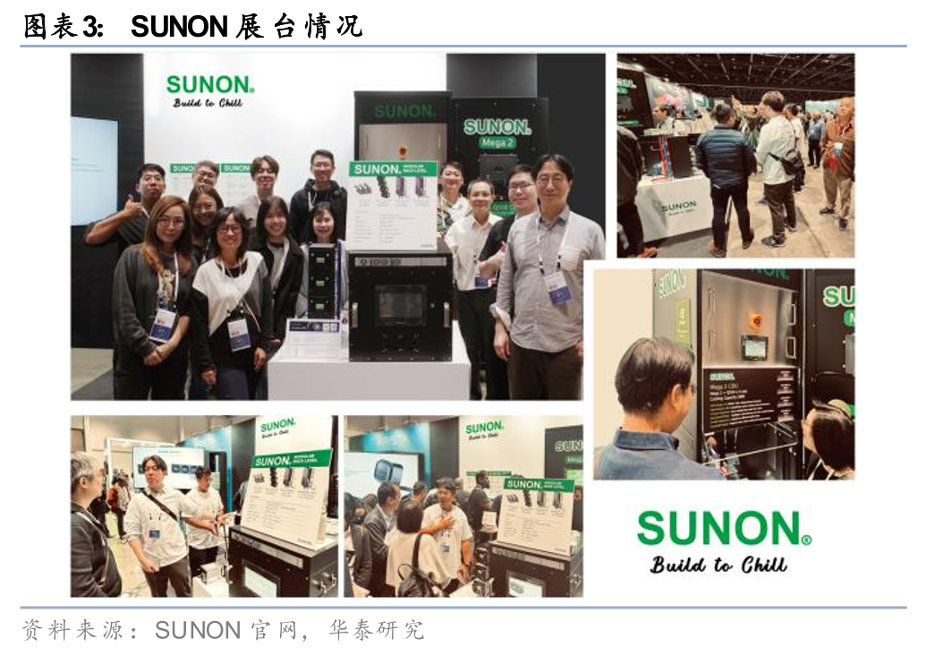 英维克展出谷歌Deschutes 5规范的CDU产品,SUNON展出其全新开发的液冷散热系统。本次OCP大会上,OCP官网列示英维克基于谷歌Deschutes 5规范的CDU产品,该产品可支持IT机柜功率拓展至2MW。与此同时,SUNON亦展出其全新液冷散热系统,产品具备三大亮点:1)开放式水冷板,专为Intel/AMD架构服务器CPU设计,实现高性能表现,并支持多种服务器平台整合。提供从标准品到高客制化的服务能力,以满足不同类型客户的需求;2)CDU冷却液分配装置:推出水对水CDU,采用模块化设计,提供灵活的选择方案,并兼顾维护便利性;3)封闭式液冷系统,提供多种部件选择,以支持应用场景,实现产品的高度化客制需求。我们认为,在AI服务器功耗提升的背景下,传统风冷的散热效果已难以支持,液冷或将凭借更优秀的散热效率迎来快速发展,目前,液冷的应用场景已不仅限于GPU,在其他部件(如CPU)上的应用也逐步增加,液冷在AI服务器内部的渗透率正快速提升。