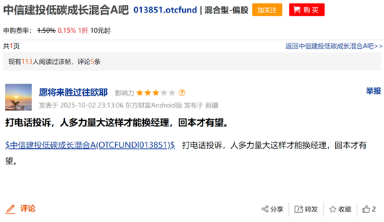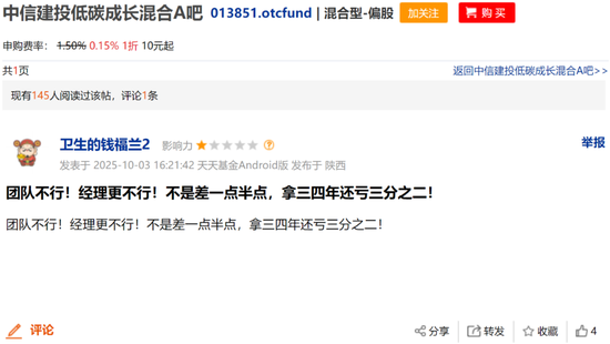 基金业绩下降,基民自然有所抱怨。不过,值得关注的是,还有基民呼吁,打电话投诉,人多力量大这样才能换经理,回本才有望。也有基民表示,电池涨了!光伏涨了!新能源汽车涨!就你趴那儿不动!也有基民表示,团队不行!经理更不行!不是差一点半点,拿三四年还亏三分之二!有基民跟帖,这行情能亏这么多也是本事,建议换只基金。甚至有基民表示,周紫光你的选股能力太差了,指数现在巳涨近3900点,你害我还亏百分之三十肆,你要花点功夫,多多学习,减少我们的损失呀!