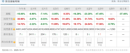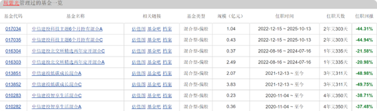 笔者发现,除了上文基金业绩跌超40%外,中信建投智享生活混合A基金业绩也不理想,该基金成立于2020年11月4日,基金规模0.36亿元。截至10月17日基金单位净0.6252,自基金成立来收益率-37.48%,今年来收益率-15%,近3月来收益率-3.05%,近1年来收益率-16.29%,近2年来收益率-23.20%,近3年来收益率-47.45%。笔者还发现,该基金一直由周紫光单独管理,任职4年又350天,任职回报-37.48%。
