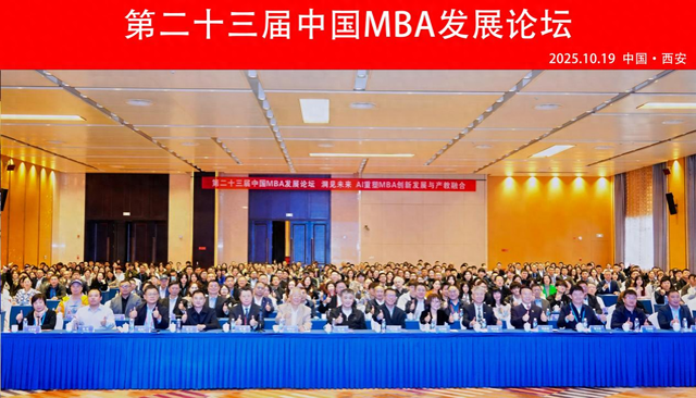 2025年10月19日,古都西安秋意正浓,由西安电子科技大学主办的第二十三届中国MBA发展论坛在陕西宾馆隆重开幕。来自全国百余所高校的专家学者、领军企业的管理精英、MBA师生及校友代表齐聚一堂,围绕“洞见未来:AI重塑MBA创新发展与产教融合”主题,共同探讨人工智能时代MBA教育的内涵变革与产教融合,为中国MBA教育的高质量发展提出新命题、探索新路径、注入新动能。