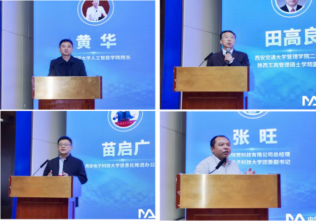 隆基绿能科技股份有限公司党委书记、副总裁李文学,北京师范大学人工智能学院院长黄华教授,西安交通大学管理学院二级教授、陕西工商管理硕士学院副院长田高良教授,西安电子科技大学信息化推进办公室主任苗启广教授,以及陕西快赞科技有限公司总经理张旺应邀出席开幕式并作主旨报告。