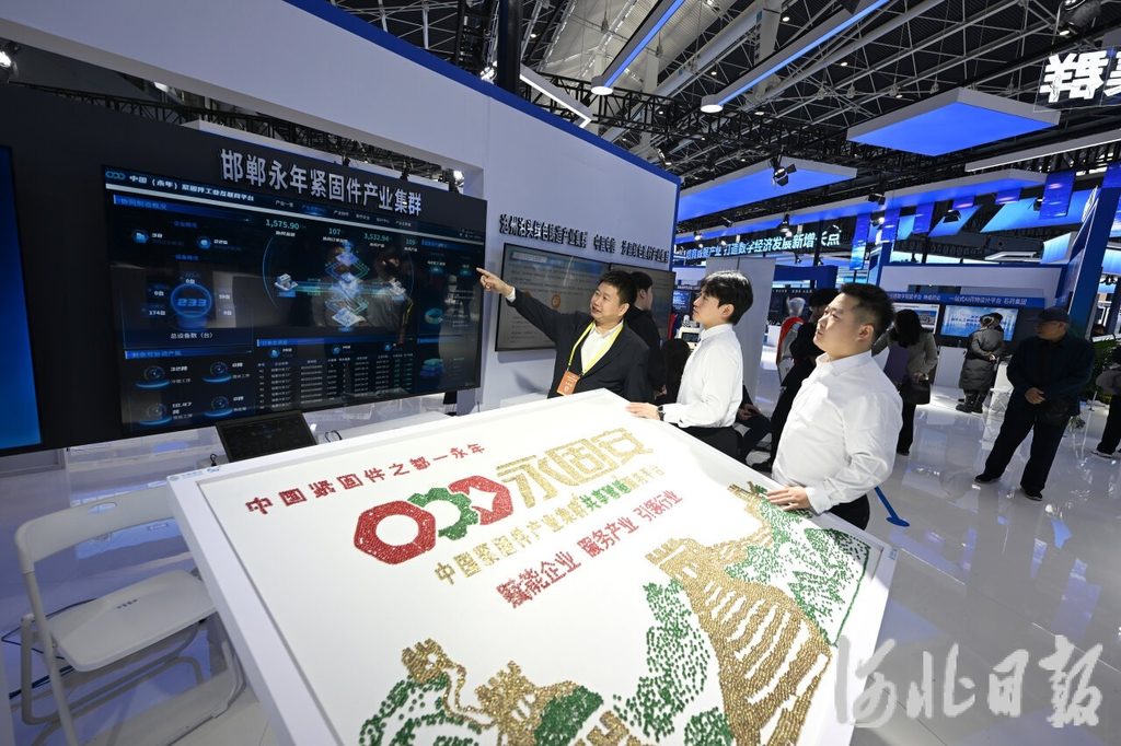 近日,2025中国国际数字经济博览会展区,工作人员向参观者介绍中国(永年)紧固件工业互联网平台。河北日报记者 史晟全摄