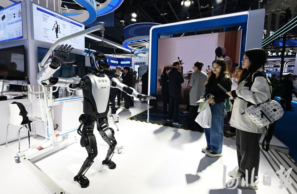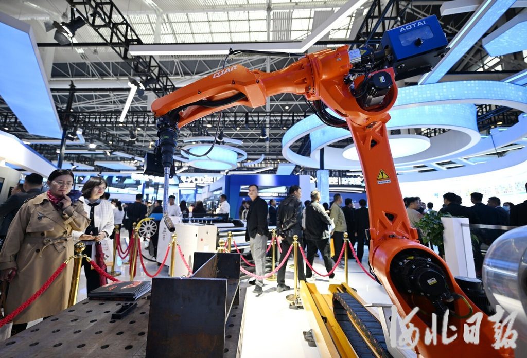 近日,观众在2025中国国际数字经济博览会展区参观工业机器人。河北日报记者 史晟全摄