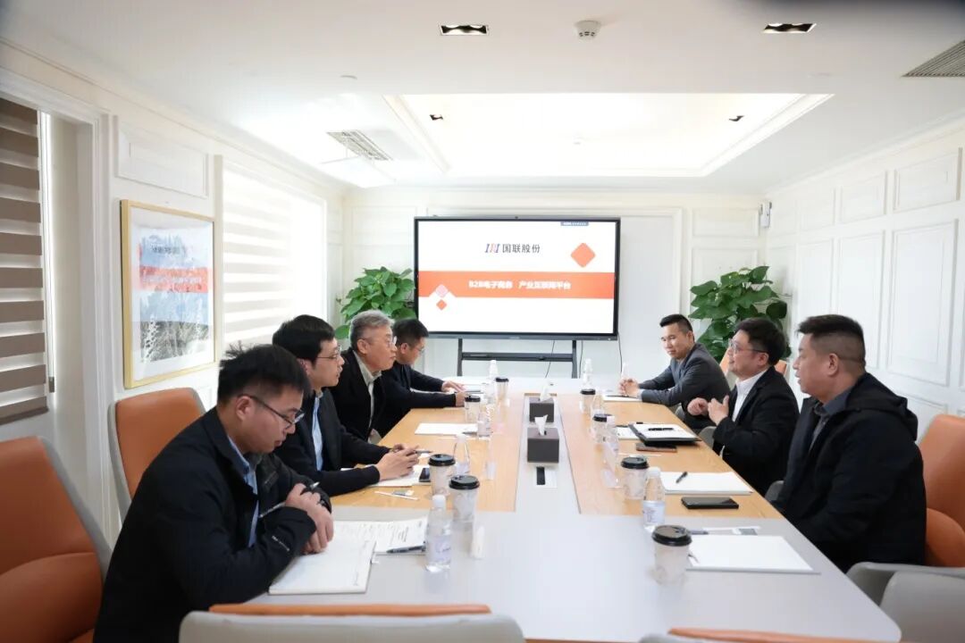 2025年10月13日,中国林产工业协会会长周鸿升、副秘书长刘栋,菏泽通盛集团党委委员、副总经理季保卫,山东通盛数据科技有限公司项目经理马运涛一行莅临国联股份数字经济总部考察交流。国联股份创始人、CEO/总裁钱晓钧,国联股份副总裁、玻多多CEO赵岩,玻多多副总裁何正礼对来访嘉宾予以热情接待,双方围绕林产工业数字化转型、供应链协同升级及产业生态构建等核心议题展开深度探讨。