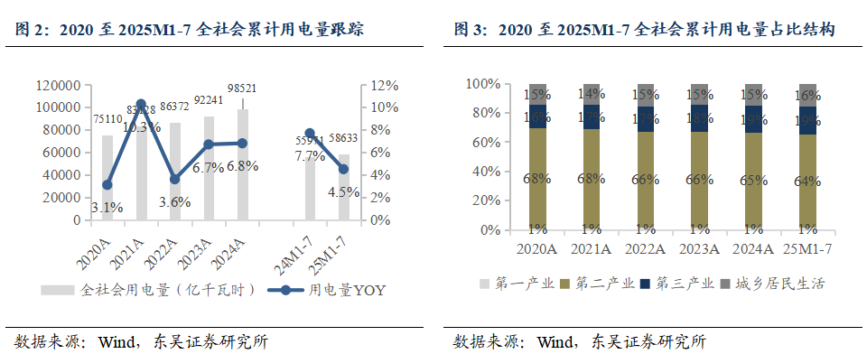 2.1.用电:2025M1-7全社会用电量同比+4.5%,增速恢复提升