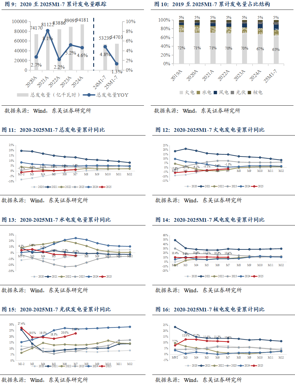 2.2.发电:2025 M1-7发电量同比+1.3%,火电恢复水电偏弱