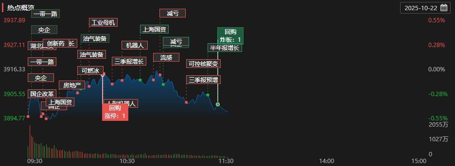 盘面上,受隔夜国际金价大跌影响,黄金概念股集体下跌,湖南白银(002716)、晓程科技(300139)、西部黄金(601069)、招金黄金(000506)、白银有色(601212)跌幅均超5%。海南自贸区板块同样调整,海马汽车(000572)、海汽集团(603069)、海峡股份(002320)领跌。另一方面,CPO概念股盘中冲高,中际旭创(300308)一度刷新历史新高。页岩气板块延续强势,神开股份(002278)、石化机械(000852)3连板,山东墨龙(002490)、石化油服(600871)2连板。房地产板块同样表现活跃,盈新发展(000620)3连板,光明地产(600708)2连板。此外,风电设备、人造肉、工程机械等多个板块盘中轮动。