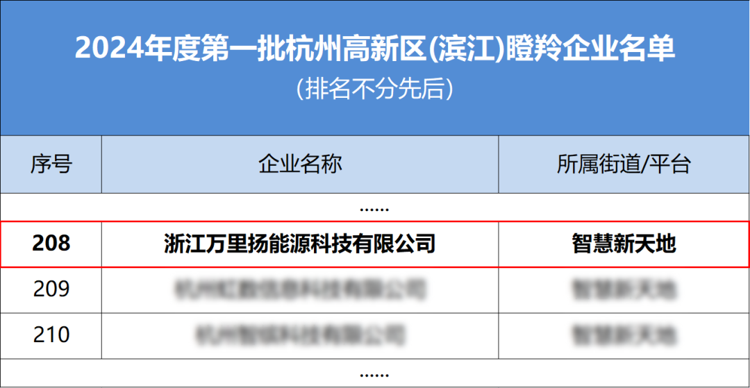 为了进一步发挥高成长企业的带动作用,杭州高新技术产业开发区经济和信息化局和杭州市滨江区经济和信息化局于近日联合发布了《2024年度第一批杭州高新区(滨江)瞪羚企业名单》。浙江万里扬能源科技有限公司(以下简称“万里扬能源公司”)凭借卓越表现再度入选。这是继2022年首次获评后,万里扬能源公司再度获此殊荣。