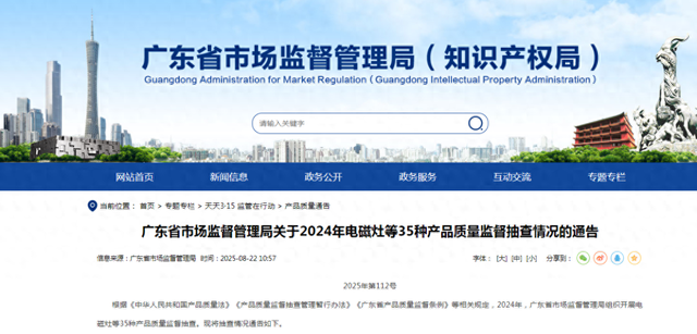 近日,广东省市场监督管理局发布了关于2024年电磁灶等35种产品质量监督抽查情况的通告,引起关注。
