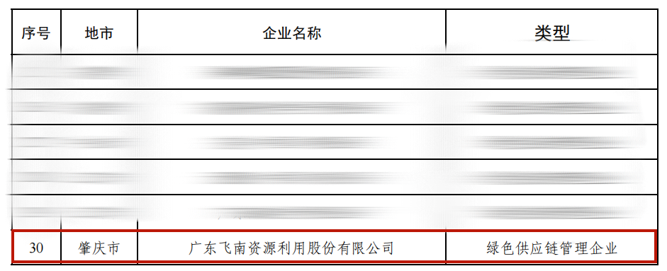 飞南资源顺利入选,这一枚沉甸甸的“绿色勋章”是政府部门对飞南资源多年来践行绿色发展理念的权威认可,值得一提的是,飞南资源是本年度肇庆市唯一一家通过“省级绿色供应链管理企业”的企业!